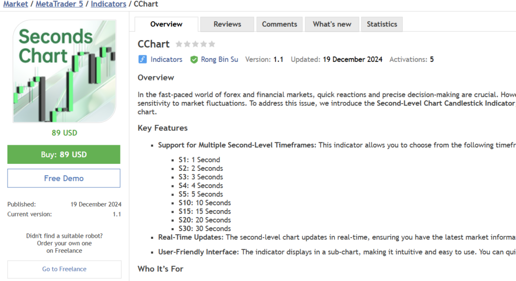 在外汇和金融市场中,快速反应和精准的决策至关重要。然而,常规的 MetaTrader 5 终端最低只支持 1 分钟图表,限制了交易者对市场波动的敏感度。为了解决这一问题,我们推出了全新的秒级图表 K 线指标,让您在副图中轻松查看和分析 1 秒至 30 秒的市场动态。