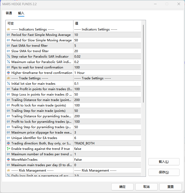 EA深知“单一设置无法覆盖所有市场”,提供丰富的可自定义参数与配置文件,让交易者按需优化: