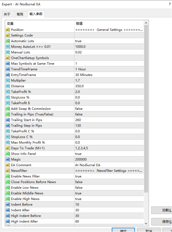 二、适用时间框架:默认时间框架H1(1小时图)。理论上支持其他时间框架(如M15、H4、D1),但需调整内部参数(需购买后通过特殊设置配置)。时间框架的选择需与EA的算法逻辑匹配,高频框架(如M15)可能增加交易频率,需结合风险偏好调整。