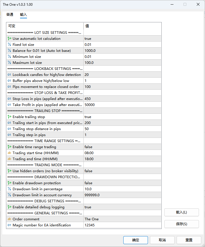 在自动化交易中,“风控”与“灵活适配”缺一不可。The One EA通过内置智能管理功能,既保障账户安全,又能适配不同交易者的风险偏好: