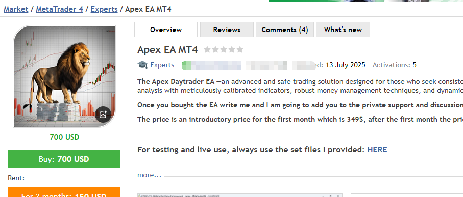 一旦您购买了 EA,请写信给我,我会将您添加到 Apex EA 的私人支持和讨论组中