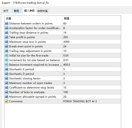 点差过滤:设置了Maximum allowable spread in points(最大允许点差),当当前市场点差超过该设定值时,机器人将不会开设新仓位。这一过滤机制能有效避免在点差过大、交易成本过高的情况下进行交易,降低交易风险。