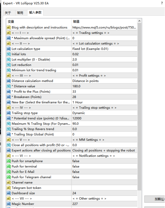 1、风险控制参数: