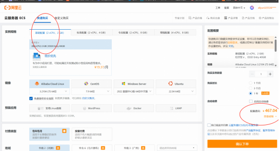 点击快速购买,每个用户可以购买一个优惠产品,100元一年的2G服务器使用。