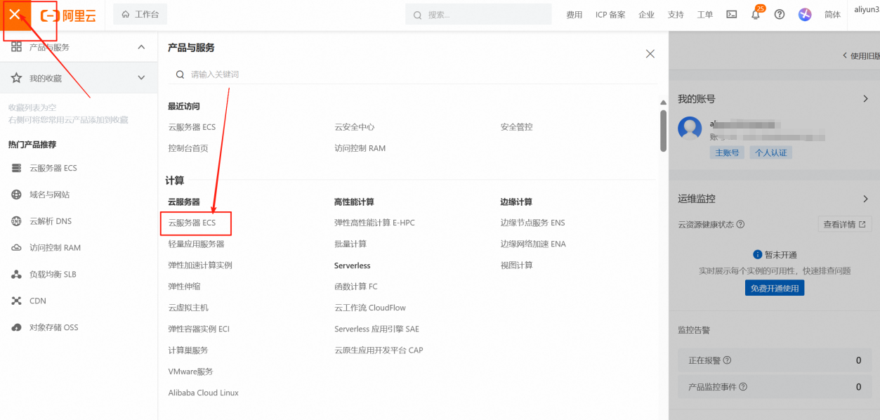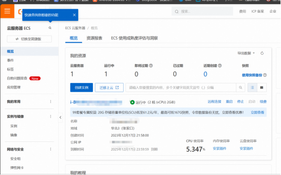 付款购买完成后 左上角进入控制台 再点击右上角进入云服务器管理后台