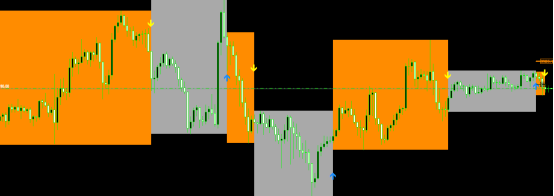 1、橙色方块背景:当K线处于橙色方块背景中时,代表市场目前处于上升趋势(涨潮)。此时,我们主要关注买入机会,并避免卖出。