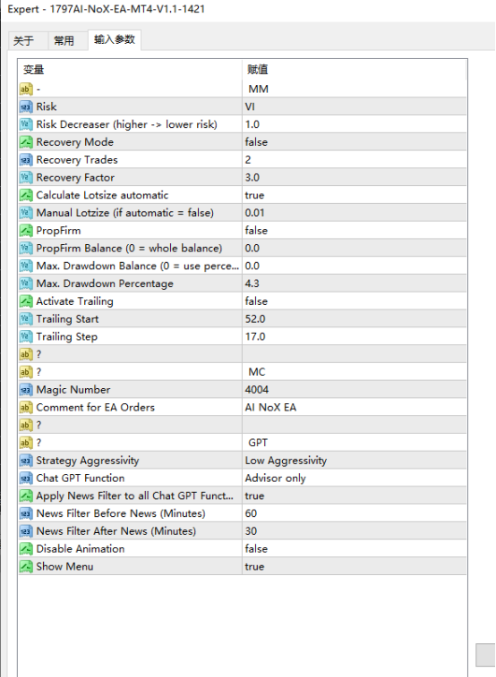 3、参数个性化调整:尽管提供“一键设置”,建议交易者根据自身风险偏好调整止损幅度、最大开仓数量等参数,尤其是在市场高波动时期(如非农数据发布前后)。