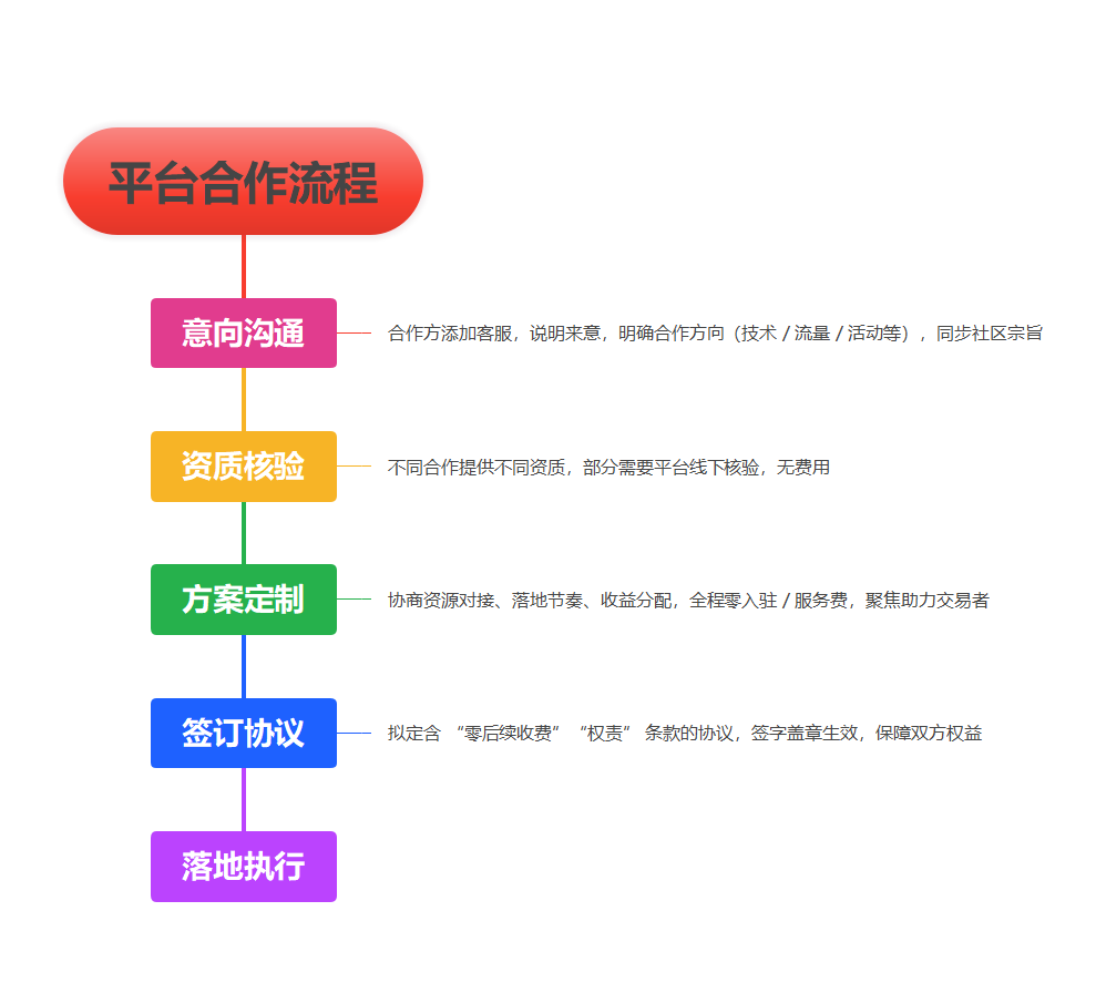 更重要的是,我们全程不向您收任何合作费用 —— 您不用承担入驻成本,反而能共享社区用户需求、参与合作收益分配。我们不追求短期合作,更希望和您一起,把 “助交易者成长” 这件事做深、做久,让双方都能在创造价值中获得长期回报。