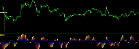颜色代表动能的不同阶段。把它们理解为汽车的档位:蓝色可能是“起步/减速档”,红色是“巡航档”,黄色是“油门踩到底的冲刺档”。通过观察颜色的变化,你可以更细腻地感知市场动能的演变过程。